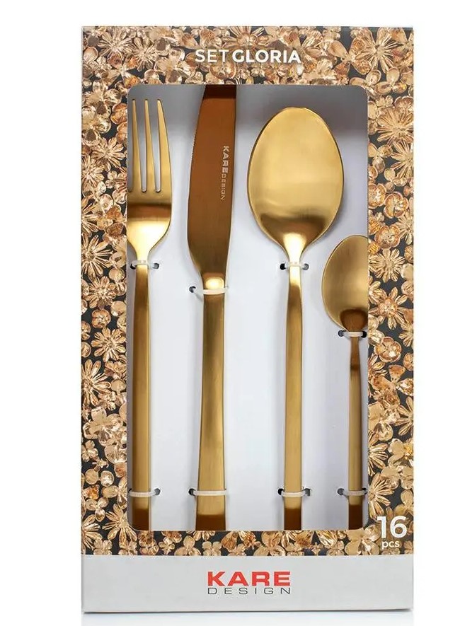Zestaw składa się z: 4 widelców, noży, łyżek i łyżeczek.