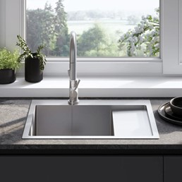 Zlewozmywak FIN to minimalistyczny model o nowoczesnej formie, zaprojektowany z myślą o funkcjonalnych i estetycznych kuchniach. Prosta linia oraz elegancki design sprawiają, że model doskonale komponuje się z nowoczesnymi aranżacjami wnętrz. FIN zapewnia trwałość, wygodę użytkowania oraz estetyczny wygląd przez długie lata.