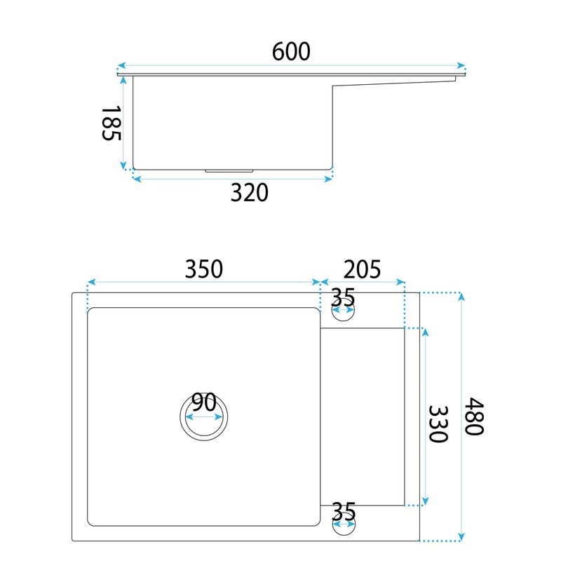 Średnica otworu odpływowego [mm]90