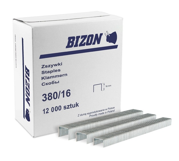 Zszywki tapicerskie firmy Bizon służące do mocowania różnego rodzaju tkanin, skóry, elementów dekoracyjnych itp. Zszywki wykonane z drutu stalowego dodatkowo galwanizowanego co zapobiega rdzewieniu po montażu.