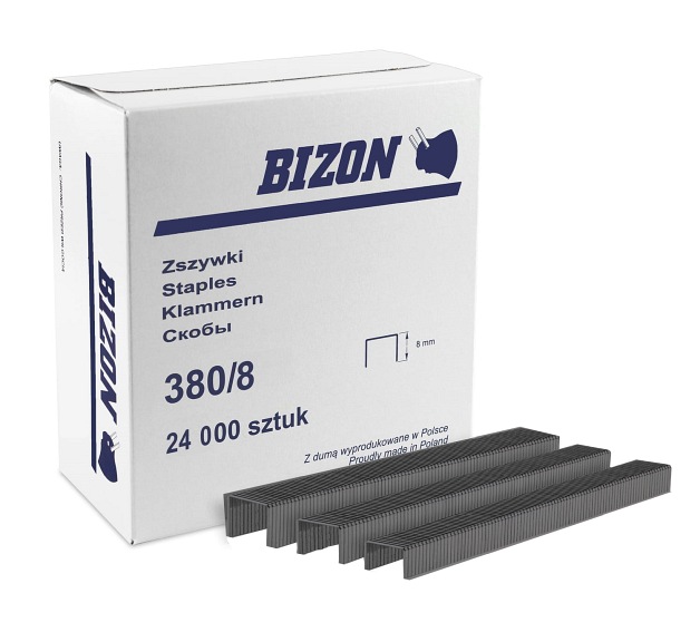 Zszywki tapicerskie firmy Bizon służące do mocowania różnego rodzaju tkanin, skóry, elementów dekoracyjnych itp. Zszywki wykonane z drutu stalowego dodatkowo galwanizowanego co zapobiega rdzewieniu po montażu.
