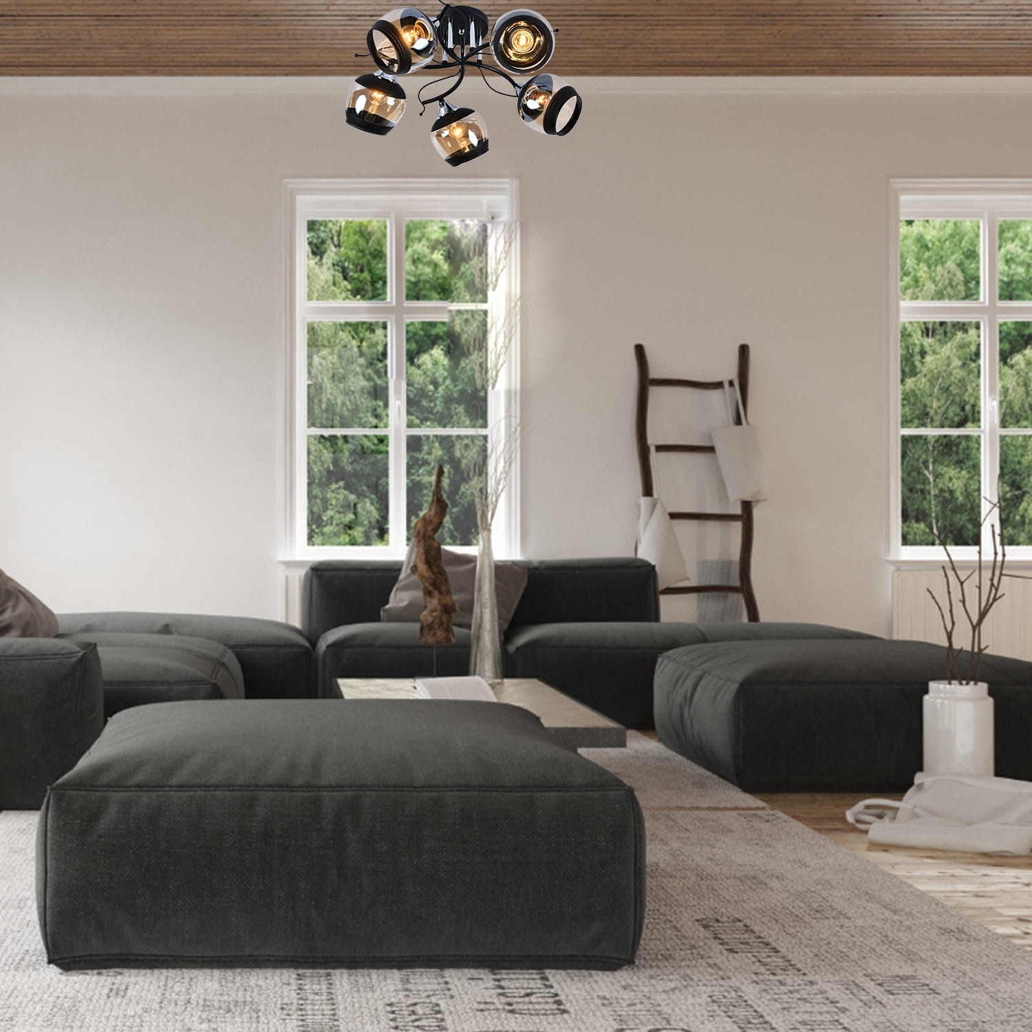 Żyrandol Almeria to nowatorskie podejście do oświetlenia, które zachwyca wyrafinowanym stylem i elegancją. Jego charakterystyczną cechą są klosze wykonane z transparentnego szkła, wykończonych subtelnym czarnym detalem, nadającym całości wyrazistości. Finezyjna forma oprawy stanowi doskonałe uzupełnienie designu żyrandola. Żyrandol nie tylko spełnia funkcję praktyczną, ale również staje się wyrazistym elementem dekoracyjnym, dodając wnętrzu niepowtarzalnego charakteru. Precyzyjne wykonanie, trwała konstrukcja oraz najwyższej jakości materiały sprawiają, że Almeria to produkt niezawodny i trwały, który sprosta oczekiwaniom nawet najbardziej wymagających użytkowników.