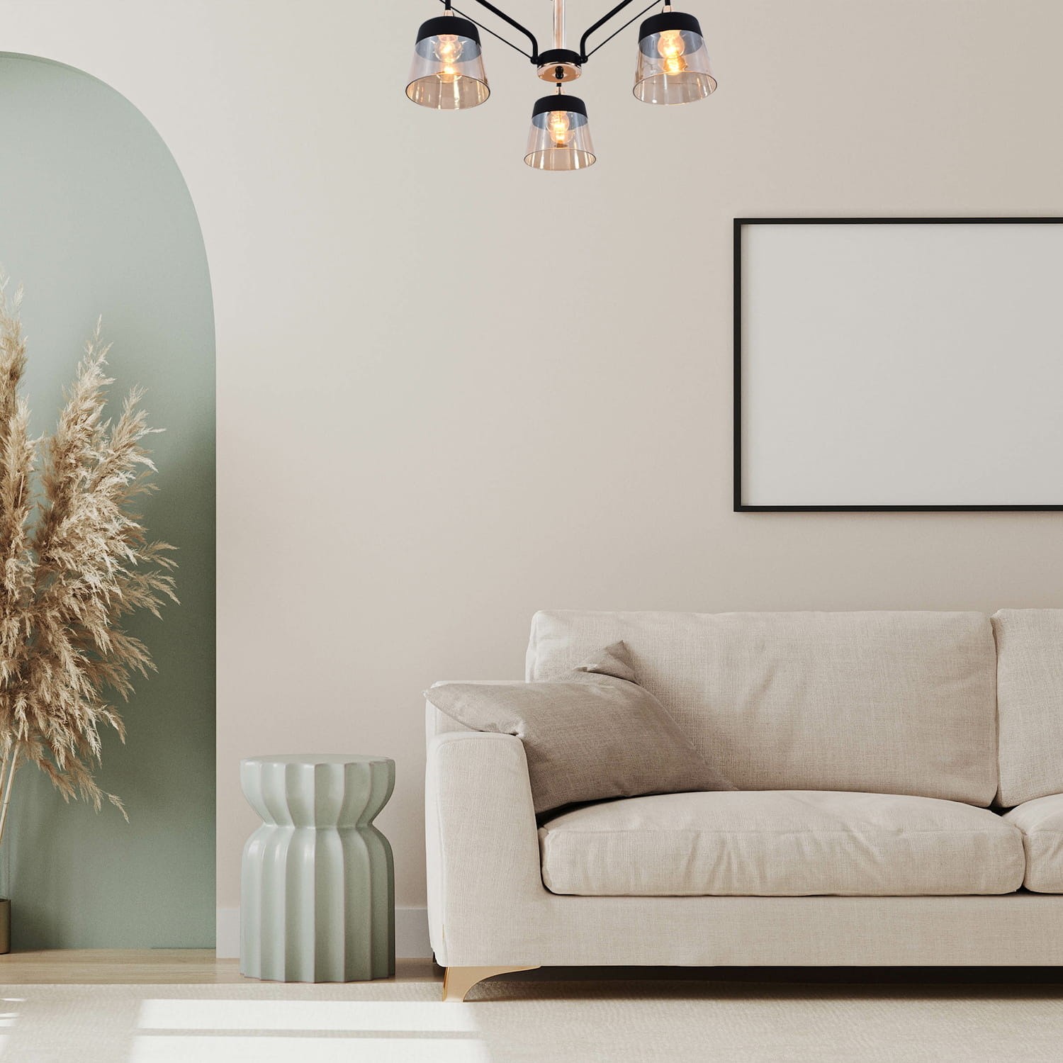 Żyrandol Egalo to wyraz stylu i nowatorskiego podejścia do oświetlenia. Jego elegancka forma, podkreślona modnym połączeniem czerni i złota, wprowadza do wnętrza wyrafinowany charakter. Szklane, zdobione klosze, osadzone na finezyjnej oprawie, tworzą efektowną dekorację, która przyciąga wzrok i dodaje przestrzeni wyjątkowego uroku. Emitowane światło tworzy ciepłą i przytulną atmosferę, a jednocześnie zapewnia funkcjonalność i komfort. Wykonany z najwyższej jakości materiałów oraz starannie zaprojektowany, żyrandol zachwyca trwałością i solidnością, dzięki czemu można się nim cieszyć przez wiele lat. To propozycja dla osób ceniących piękno i nowoczesny design w swoim otoczeniu.