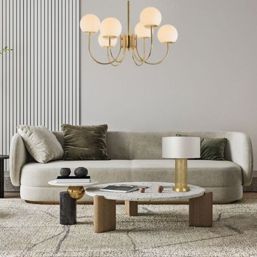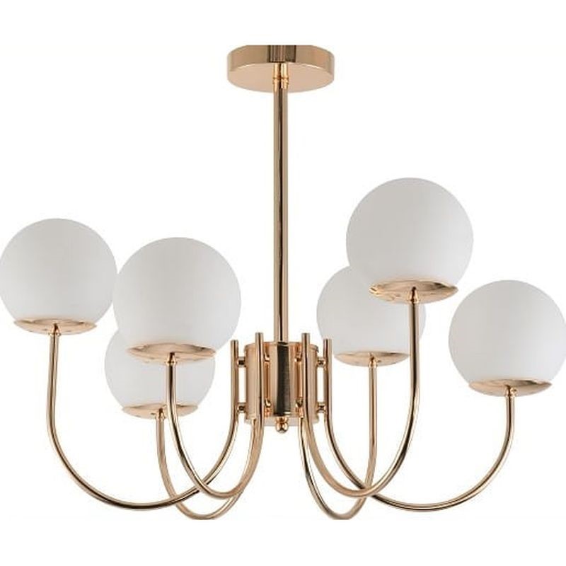 Freia to elegancki żyrandol o sześciu ramionach, dostępny w dwóch wykończeniach – chromowanym i złotym. To oświetlenie stworzone do wyrafinowanych wnętrz, w których liczy się szyk i efektowność. Konstrukcja łączy prostotę z luksusem, oferując jasne, ale przyjemne światło. Doskonały wybór do salonu, jadalni lub wnętrz hotelowych.