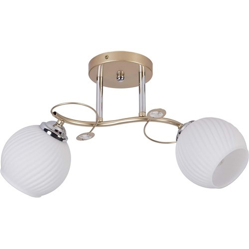 Żyrandol Goldio to niezwykle efektowny model oświetleniowy, który przyciąga uwagę swoją unikalną formą. Złoty korpus doskonale współgra z dwoma kloszami wykonanymi z mlecznego, grubego szkła, tworząc efektowną całość. Dzięki stonowanej, neutralnej kolorystyce bieli i złota, żyrandol Goldio doskonale komponuje się z różnymi estetykami wnętrz, łatwo wtapiając się w różnorodne aranżacje. To doskonała propozycja oświetlenia centralnego dla salonu, jadalni, sypialni, garderoby, kuchni oraz przedpokoju. Poprawny rozstaw dwóch źródeł światła wypełnia pomieszczenie jasnością, zapewniając komfort użytkowania.