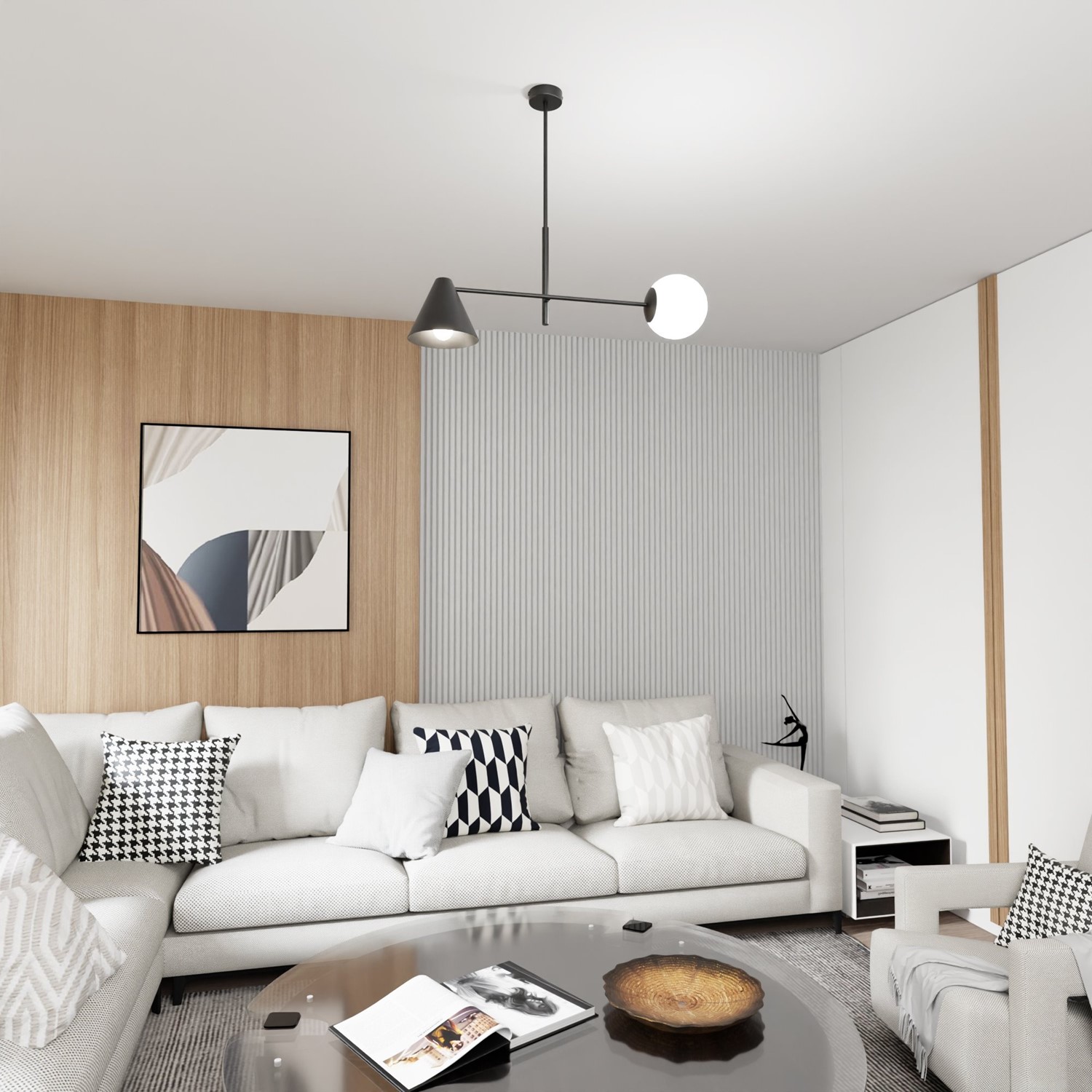 Żyrandol HERMES to wyjątkowe połączenie nowoczesnej elegancji i surowości industrialnego designu. Kontrast pomiędzy delikatnym szkłem a chłodnym, twardym metalem podkreśla jego unikatowy charakter. Metalowe klosze, które można ustawiać w dowolnej pozycji, oraz nieco nieregularna forma nadają lampie dynamicznego i oryginalnego wyglądu, doskonale uzupełniając wnętrza o wyrazistym stylu. Wykonany w Polsce z najwyższej jakości materiałów, stanowi doskonały wybór dla miłośników nietypowych rozwiązań oraz stylowego wykończenia wnętrz.