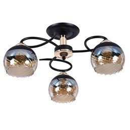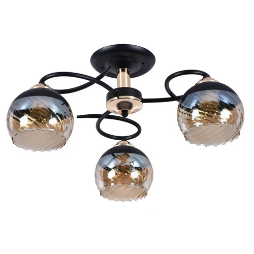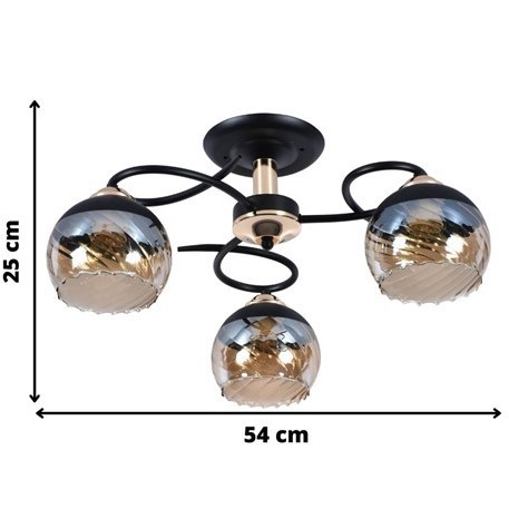 Matera 3 to atrakcyjny żyrandol, charakteryzujący się eleganckim stylem oraz harmonijnym połączeniem kolorystycznym - czerni i złota. Nietuzinkowa forma korpusu, na którym umieszczone są trzy szklane klosze, z góry w kolorze czarnym, zakończone dymionym szkłem, sprawia, że lampa stanowi doskonałą propozycję oświetlenia centralnego do salonu, jadalni, sypialni, garderoby oraz przedpokoju. Szczególnie polecana do eleganckich i nowoczesnych wnętrz. Elegancko wykończona, gwarantuje idealnie ciepłe i jasne światło, nadając każdemu pomieszczeniu niepowtarzalny charakter. Solidna konstrukcja, precyzyjne wykonanie oraz wysokiej jakości materiały użyte do produkcji lampy Matera 3 zapewniają nie tylko estetyczny wygląd, lecz także trwałość i funkcjonalność przez długie lata.